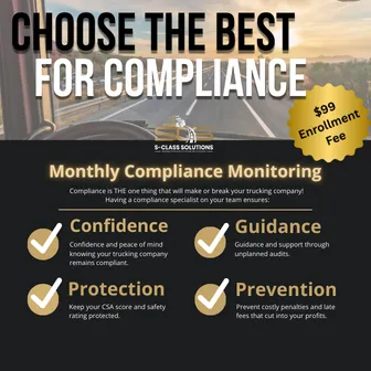 S-Class Solutions provides top-tier trucking solutions, including compliance, back-office support, consulting, and drug & alcohol clearinghouse management. We help Owner-Operators and small fleet owners streamline operations, stay compliant, and drive long-term success.